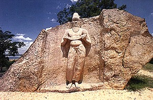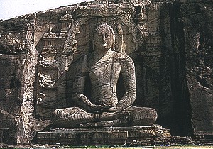 On the Southern side of the Parakrama Samudra (Polonnaruwa) is a striking stone colossus of a beared man holding in his hands what seems to be a york. The care-worn expression hints at royalty and popular belief identifies it as Parakramabahu the Greate.