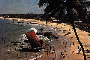 Typical scence on the Western & Southern coasts. In the morning the outrigger fishing boats sail home with their catch, some of which is offered for sale on the beach. |